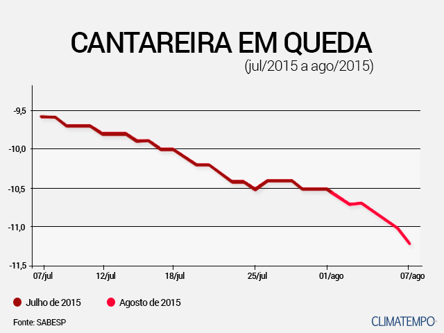 Essa condição acelerou o ritmo de queda do Sistema Cantareira como pode ser visto no gráfico que leva em consideração o "saldo negativo", ou seja, a utilização da reserva técnica.