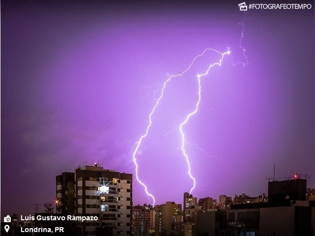 O norte do Paraná também está sujeito a temporais. A foto mostra parte das descargas elétricas que caíram sobre Londrina na noite de 26 e outubro de 2015.