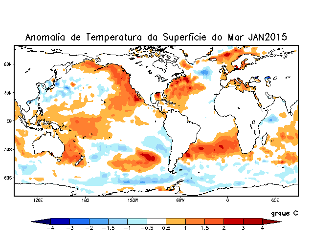 O bloqueio de águas quentes do Atlântico Sul voltou a atuar em janeiro de 2015.