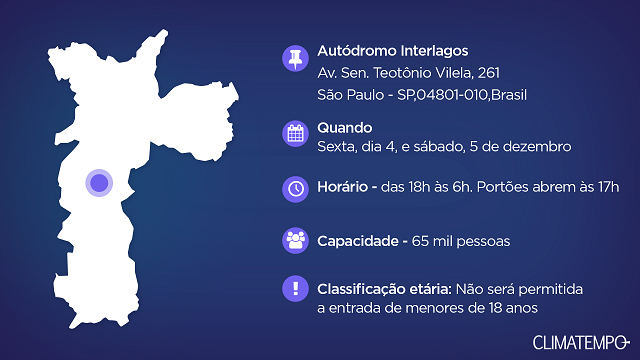 A meteorologista Josélia Pegorim comenta sobre os ventos que podem interferir no funcionamento dos brinquedos e sobre o maior risco de chuva entre a noite do sábado e a madrugada do domingo, 6 de dezembro.