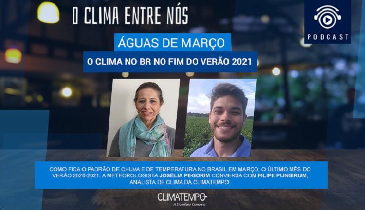 Confira agora mais detalhes da previsão do clima em março no Brasil, no podcast O Clima entre Nós que entrevistou o meteorologista Filipe Pungirum, analista de clima da Climatempo.