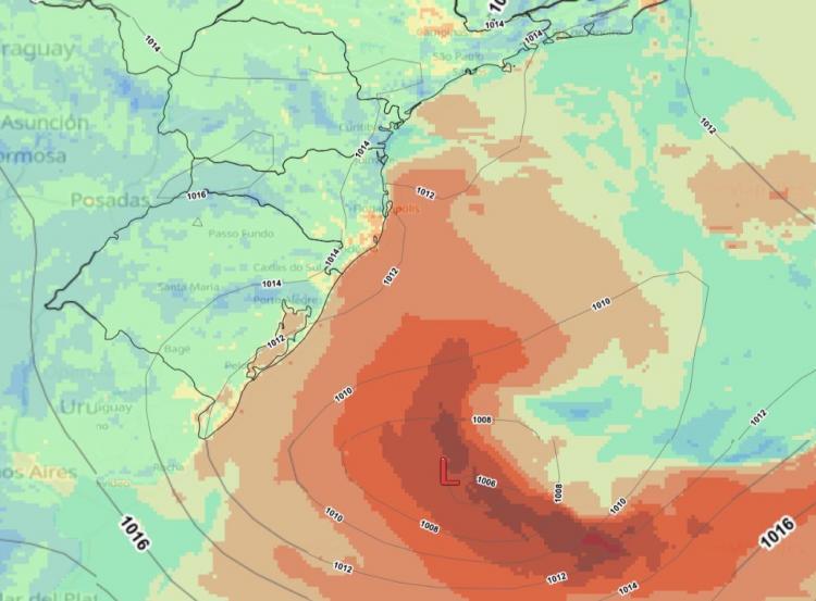 Uma área de baixa pressão atmosférica se intensifica na costa Sul do Brasil e se desloca em direção à costa do Sudeste. Porém, os meteorologistas estão intrigados com o movimento retrógrado que esta baixa pressão faz, voltando do mar em direção ao continente. Confira no vídeo abaixo.