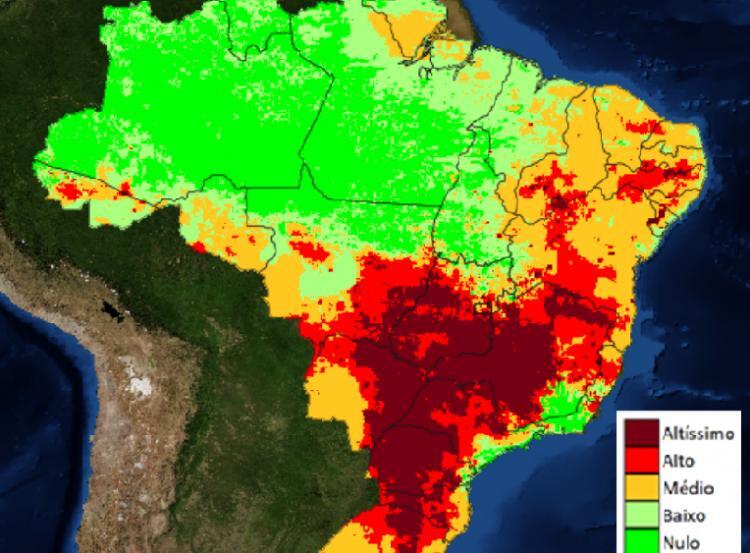 O mapa abaixo mostra o risco de incêndio. Sem expectativa de chuva para os próximos dias no centro-sul do Brasil, a situação que já é crítica nas áreas indicadas como de alto e altíssimo risco de incêndio só tende a se agravar.