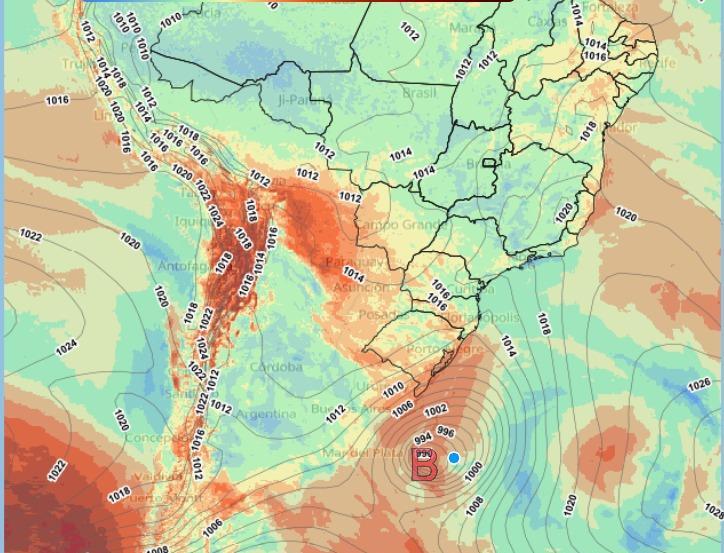 Os modelos atmosféricos divergem um pouco sobre a queda da pressão deste ciclone. Desta forma, este ciclone não entra na categoria de "ciclone bomba", pois a sua pressão não cai rápido o suficiente. De qualquer forma, vale ressaltar que é um ciclone extratropical forte que vai provocar ventos de até 100km/h entre o Rio Grande do Sul e Santa Catarina, grandes acumulados de chuva, queda de granizo e com grande potencial para diversos transtornos.