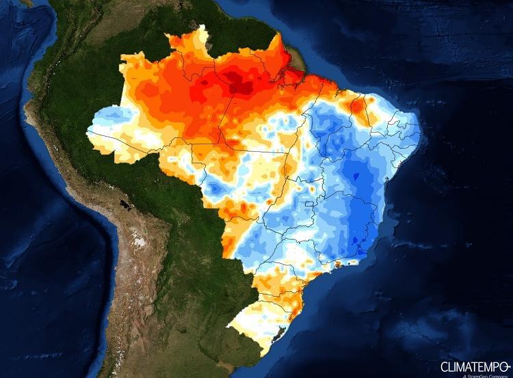 A chuva fica concentrada à tarde e à noite, de forma mal distribuída, isolada. Para o sul do Pará, a indicação de invernada é pequena.